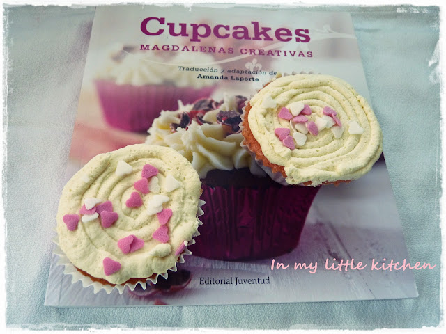 A mi San Valentín ni fu ni fa, pero no me pude resistir a hacer estos cupcakes. Son de un libro que se llama Cupcakes Magdalenas creativas, libro, que encontré en la FNAC, y que no pude evitar traerme a casa, tiene 100 recetas de cupcakes, muy sencillas y con ingredientes fáciles de encontrar. Así que amenazo con hacer todas y cada una de ellas, avisados quedáis.