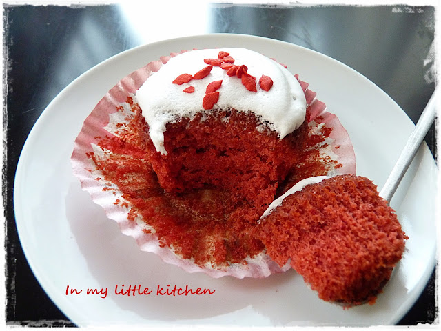 Después de este testamento (ya me perdonareis), hoy vengo con unos cupcakes en los cuales, por primera vez, he utilizado colorante rojo, como ya sabréis no aporta sabor y la verdad es que quedan muy bonitos. También ha sido la primera vez que en lugar de buttercream he utilizado merengue para decorar, así que como veis hay otra opción para decorar estos pastelitos. He de decir que son los mejores cupcakes que he hecho, mis favoritos eran los de limón y lima, pero estos los han pasado a un segundo lugar. Os dejo con la receta.