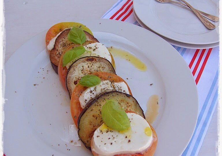 La ensalada que os traigo hoy, se podría decir que es una variación de una ensalada Caprese, la cual es una de mis favoritas. Se añaden las berenjenas y además es tibia, así que resulta espectacular.
