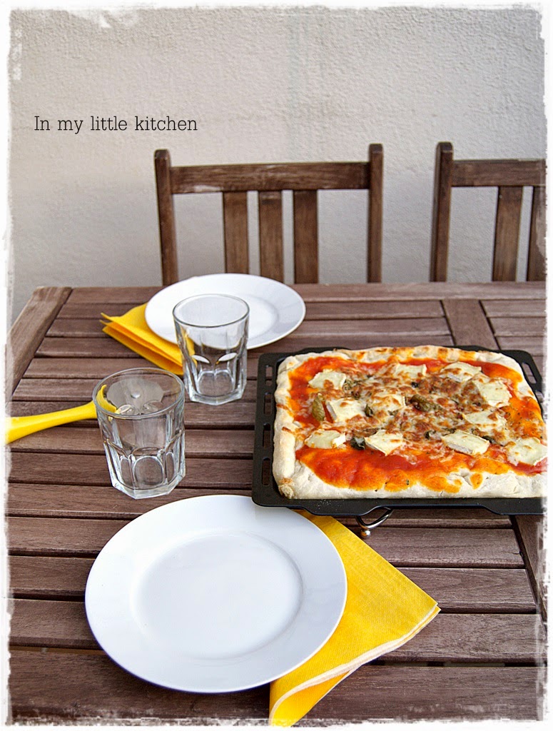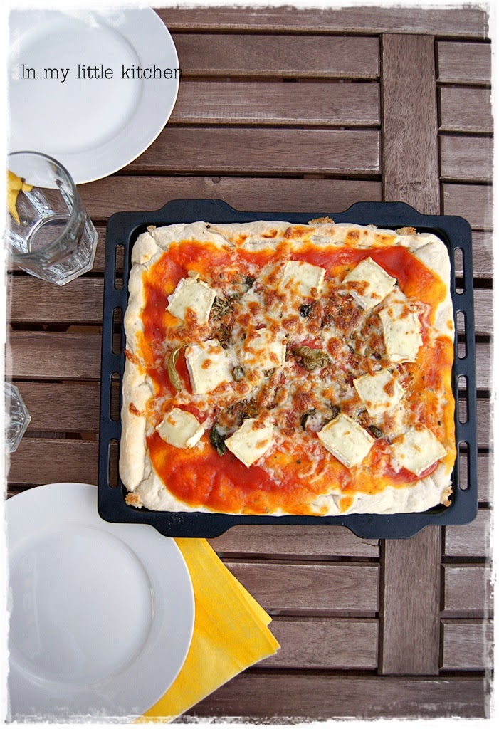 La receta que hoy os traigo es ideal para una cena de una noche de verano, se trata de una pizza casera, como a mi me gustan, con la masa gordita. Como ya os podéis imaginar admite cualquier aderezo, todo le pega. En esta ocasión he elegido queso cambembert, mozarella y albahaca.