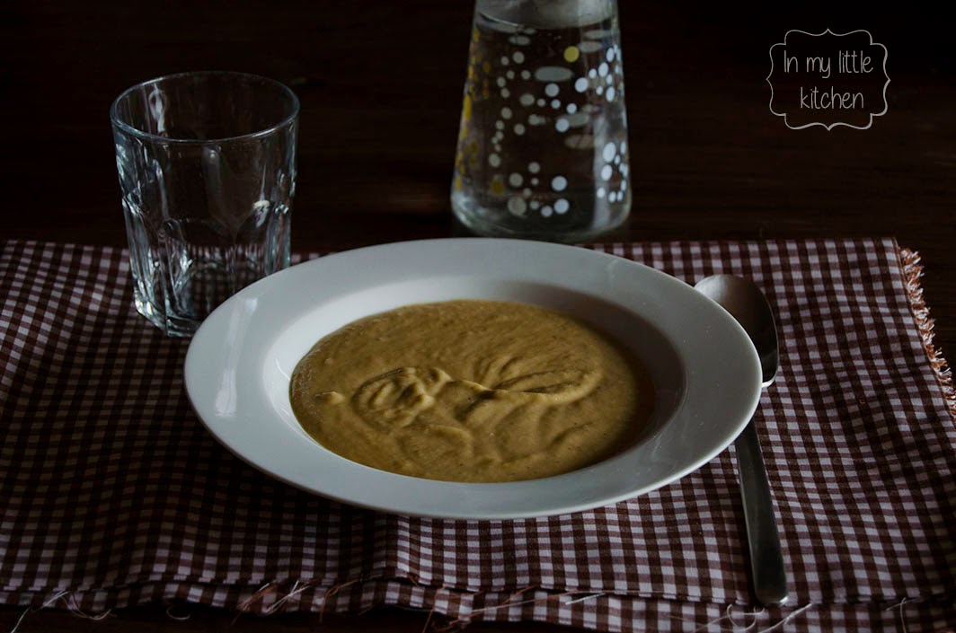 Como habréis leído en el título, se trata de una crema de berenjenas asadas, acompañadas de otras verduras, resulta una opción estupenda para comer o cenar, que ya vienen días de frío y lluvia y va apeteciendo.