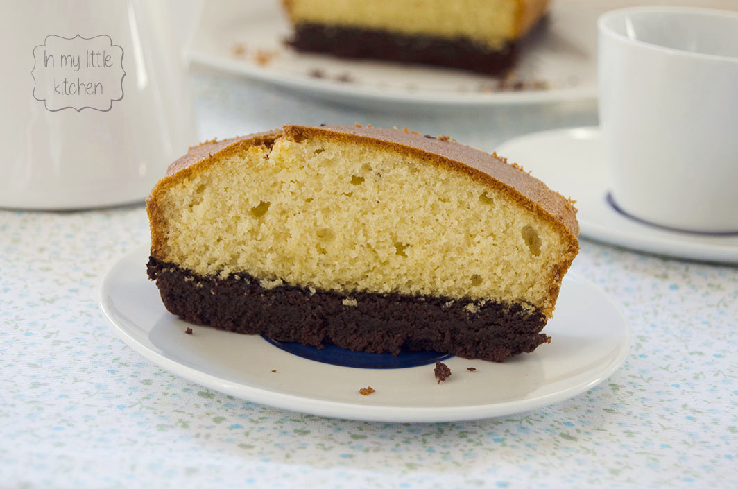 Este bizcocho lo vi en Pinterest (donde si no), y me recordó a esos bizcochos que venden en paquetes individuales que son un bizcocho normal al que han bañado la parte de abajo en chocolate, pero ¡¡ay queridos!!, es que este además de ser casero…¡¡la parte de abajo es de brownie!!, ¿qué más se puede pedir?. Una auténtica delicia, os lo puedo asegurar.