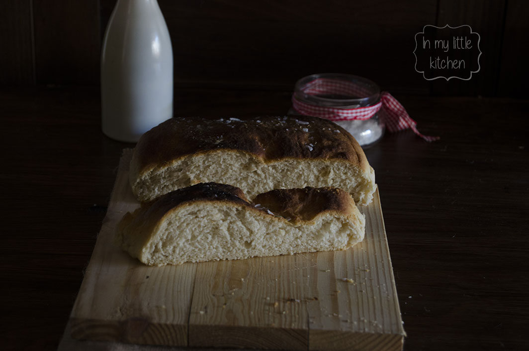 Dejar templar fuera del horno pero dentro de la cazuela y terminar de enfriar sobre una rejilla. Si queréis podéis espolvorear escamas de sal, una vez esté templado, el resultado es espectacular tanto para dulce (tostado con mermelada) o salado (con salmón ahumado está riquísimo).