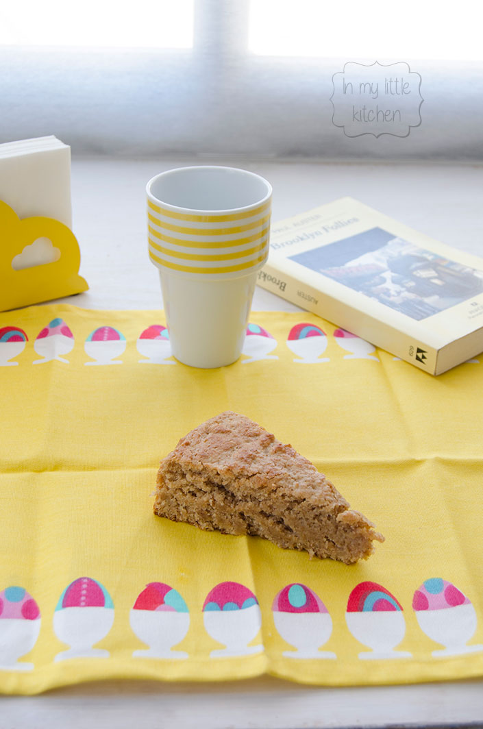 Se trata de un bizcocho que no lleva ni lácteos ni huevos, con un sabor espectacular, y que yo he hecho con manzanas asadas en lugar de puré de manzana. El sabor es espectacular, es jugoso y totalmente adictivo.