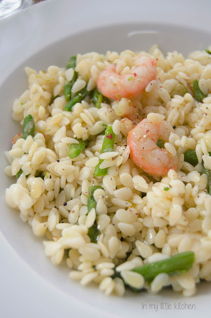 La pasta que he utilizado es parecida a la pasta orzo que utiliza Nigella Lawson, de hecho yo ya la he utilizado en otra receta de la propia Nigella, este risotto de pasta en el que se cuece la pasta de una forma distinta, el caso es que tanto una como otra están exquisitas.