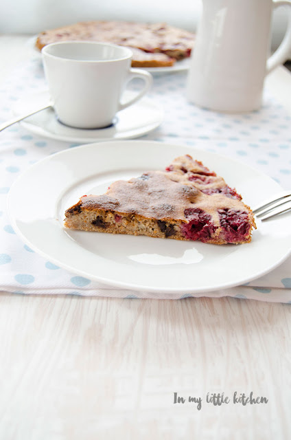 Como siempre la receta es muy sencilla y me inspiré en una receta que vi en Pinterest del blog Amy’s Healthy Baking. Yo introduje unas pepitas de chocolate entre los ingredientes, y creo que le van muy bien. El resultado es fabuloso, creo que las frambuesas le dan un toque de acidez que a mi personalmente me encanta, a veces tengo que cortarme a la hora de ponerlas porque corro el riesgo de pasarme añadiendo.