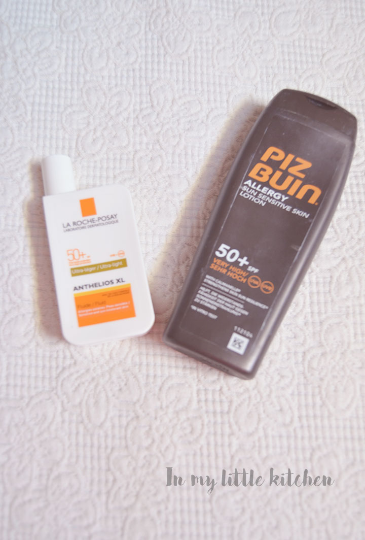 Soy alérgica al sol, y por ello tengo que llevar cremas especiales para la gente con este tipo de sensibilidad y que además tengan un factor de protección alto. Estas dos cremas reúnen esas características. La de la Roche Posay es la que uso para la cara, me la pongo cada vez que salgo a la calle, aunque sean cinco minutos, y me protege fenomenal, desde que la estoy usando no he tenido ningún problema. La de Piz Buin me tiene enamorada, es la que utilizo para el cuerpo, la descubrí el año pasado después de un brote de alergia muy fuerte por culpa de una crema que no me protegía lo que debía y me la recomendaron en la farmacia. Estoy encantada con ella porque no he tenido ningún problema con ella y además me ha permitido coger algo de color, un dorado precioso a pesar de que yo no me tumbo al sol.