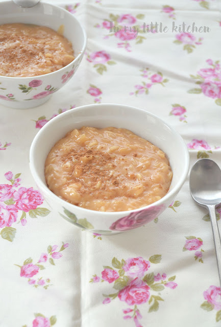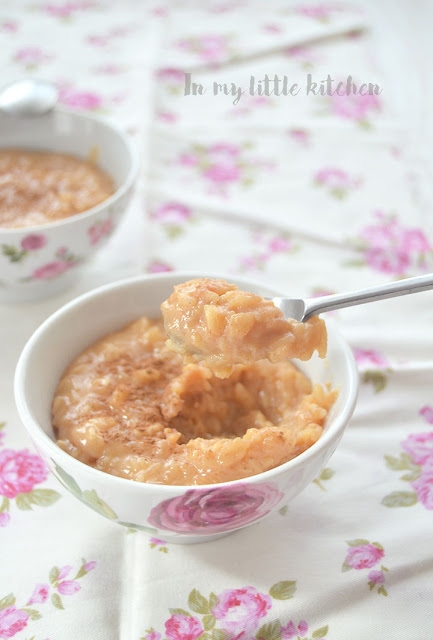 Apunté varias recetas para hacer, porque si habéis visitado el blog de Ana habréis visto que es una maravilla todo lo que cocina, aunque finalmente me decanté por este arroz integral con leche, una auténtica maravilla. La modificación que introduje es que yo le añadí esencia de vainilla, de ahí que haya quedado con ese color.