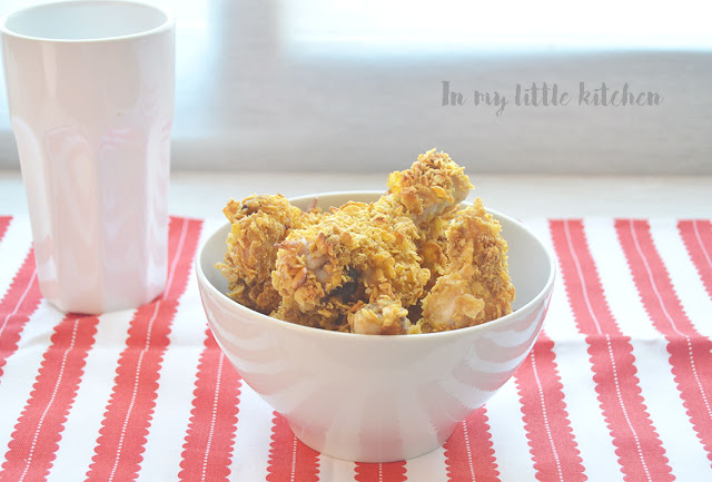 Tengo que decir que con las cantidades que os voy a poner, el pollo queda bastante suave, así que la próxima vez que lo haga, (que será muy pronto), quizá ponga más cantidades de las especias y un poquito más de guindilla. Como podéis ver en la receta yo lo he hecho en el horno, pero podéis hacerlo frito en abundante aceite. A nosotros en el horno nos quedó estupendo, muy jugoso.