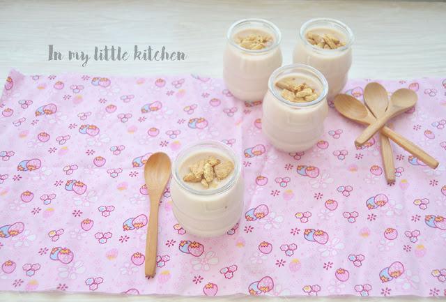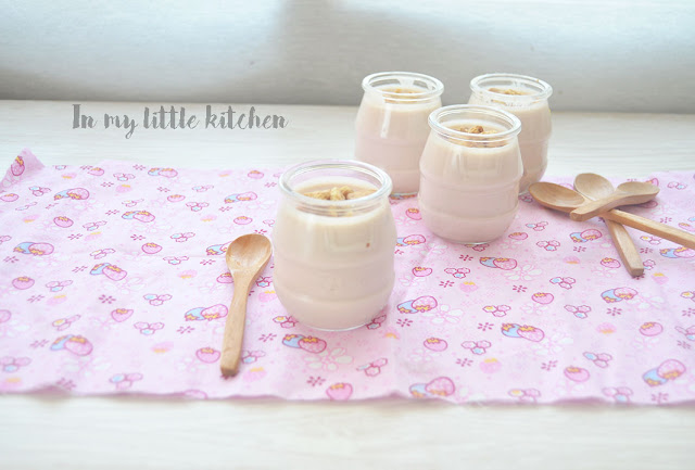 Tras hacerme un cursillo acelerado (mil gracias Maite, Ana y Encarnita), me puse a ello y lo que estáis viendo son mis primeros yogures, unos deliciosos y cremosos yogures de fresa y vainilla que nos engancharon desde el primer momento.