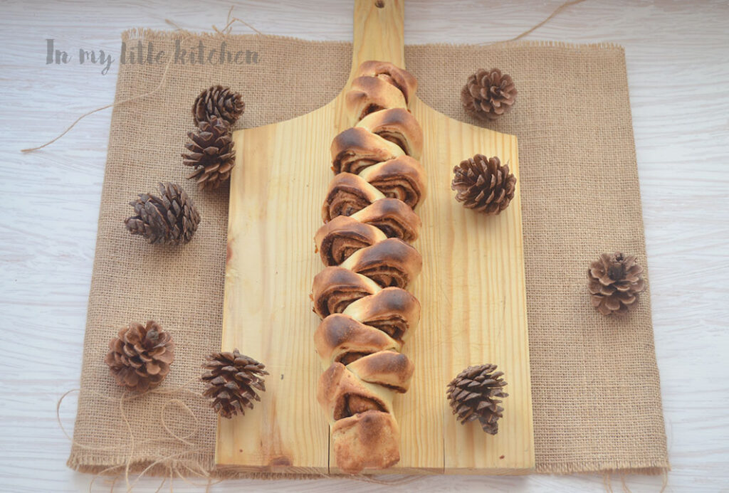 El caso es que yo sigo con mis recetas navideñas y cuando vi esta trenza rápida de canela, sabía que iba a hacerla… yo no encontré masa de pizza cuadrada, y no tengo todavía el brazo para poder amasar y hacer mi propia masa, así que utilicé masa de pizza redonda y quedó espectacular también.