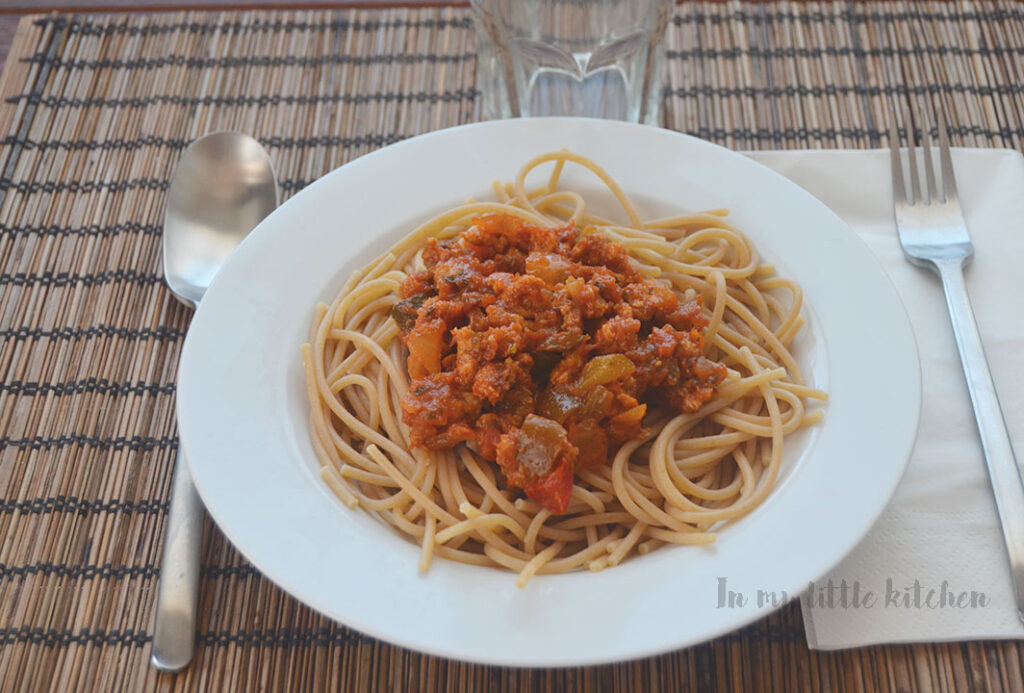 Hace unos meses os mostraba cómo hacíamos en casa la boloñesa vegana a base de lentejas, una auténtica delicia, y hoy os traigo una nueva versión de este tipo de boloñesa, en esta ocasión hecha con soja texturizada y verduras, que se la vi a mi amiga Montse.