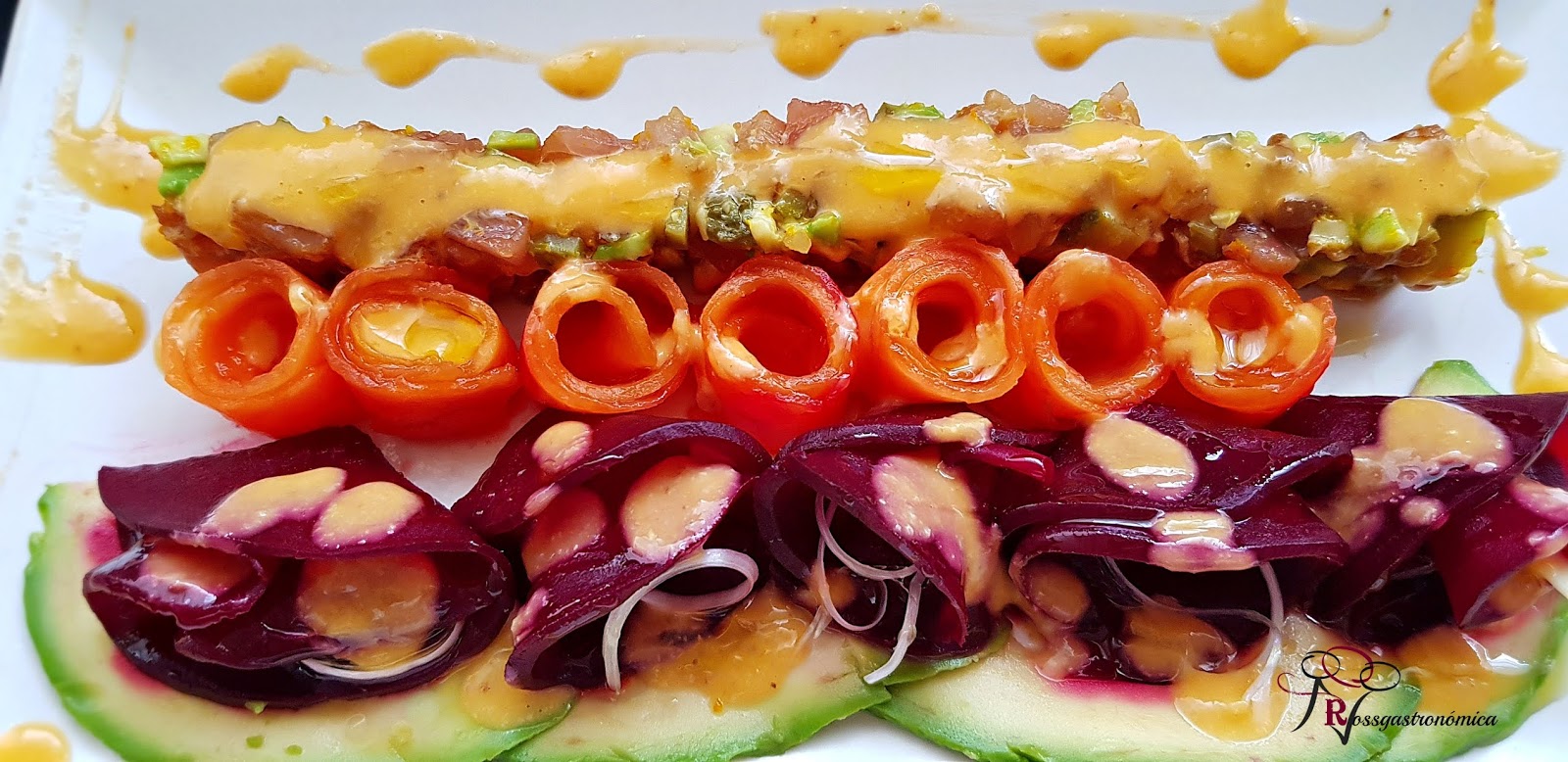 Carpacio de remolacha en lienzo de Ross Gastronómica.
