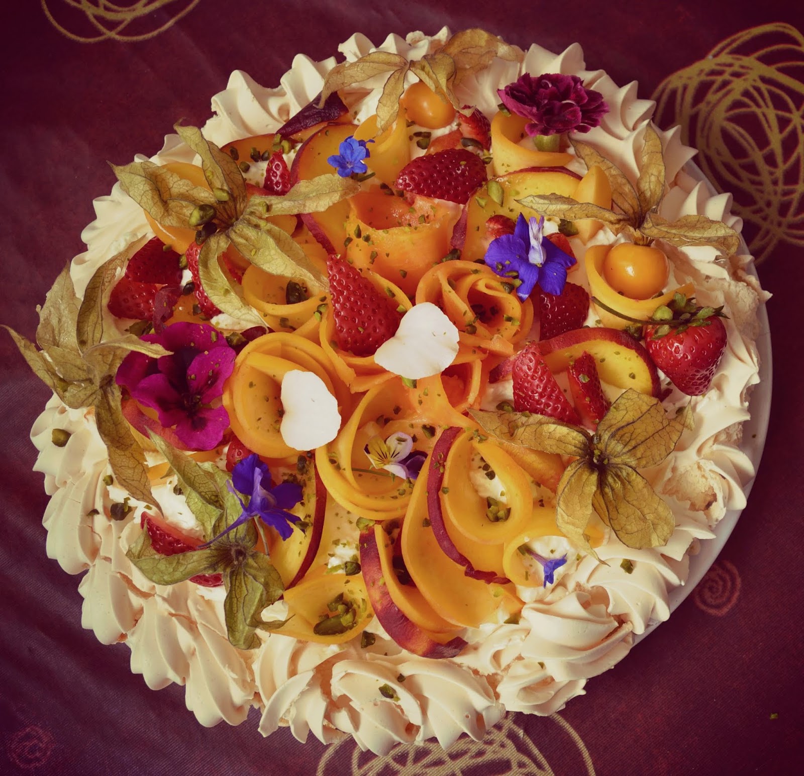 Laura se ha decantado por esta apetitosa pavlova de frutos de temporada. Todos los colores transportan al cuadro, es una maravilla ¿no os parece?