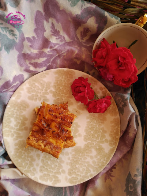 Margot, ha dado protagonismo a la manzana y junto con el melón nos ha preparado esta deliciosa tarta especiada… la pinta no puede ser más buena y la foto… nos traslada al cuadro.