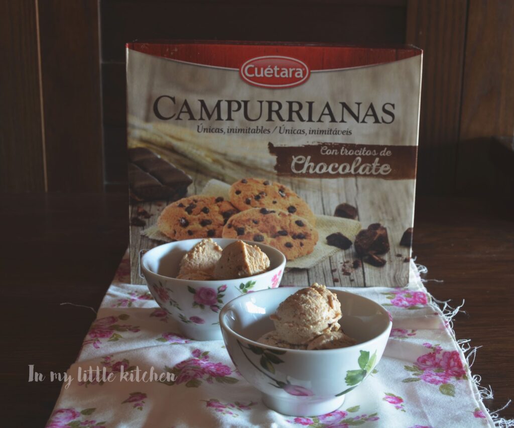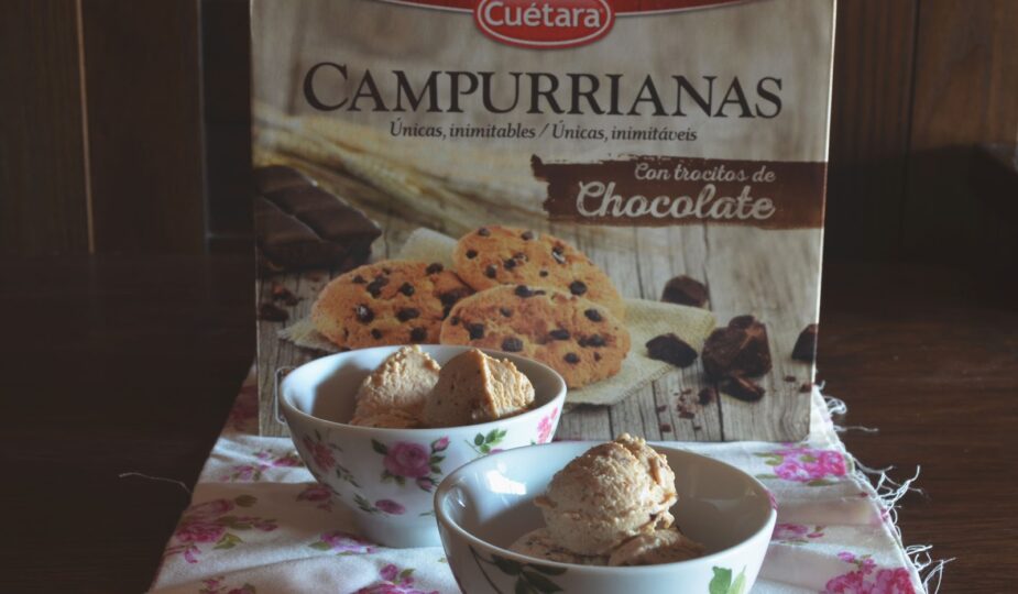 El hacer el helado de galletas campurrianas fue porque este mes en la cajita Degustabox, venía una supercaja de galletas campurrianas con pepitas de chocolate…¡¡¡con pepitas de chocolate!!! que me trasladó directamente a la infancia, si tenemos en cuenta que me encanta el helado de cookies y galletas… no podía hacer otra cosa.