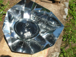 Chica que cosa más interesante. Que hay sol cocinamos gratis, que se nubla y llueve pues nada a lo convencional. Desde luego a mi me ha encantado el sistema, me habría venido genial en mi época de campista, menudo ahorro de espacio y energía.