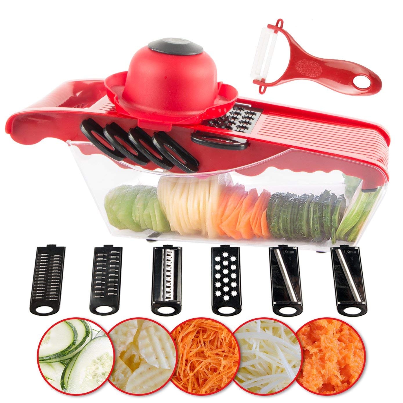 Mandolina: Llevo detrás de una mandolina tiempo, pero me da mucho miedo el cortarme con las cuchillas, creo que las patatas fritas, las verduras y las frutas quedarían genial.