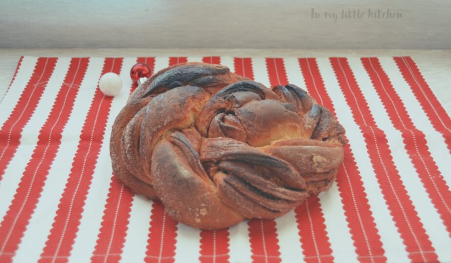 El kringle es un dulce que lleva canela (me encanta la canela, todo lo que lleve canela es un éxito en casa) y se puede decir que equivale a nuestro Roscón de reyes. Se trata de un bollo cuya masa recuerda al brioche y que se puede rellenar de pasas, frutos secos o como es mi caso azúcar y canela. Se le puede dar forma de corona pero yo decidí enrollarlo sobre sí mismo y quedo precioso aunque he de decir que me falta práctica.