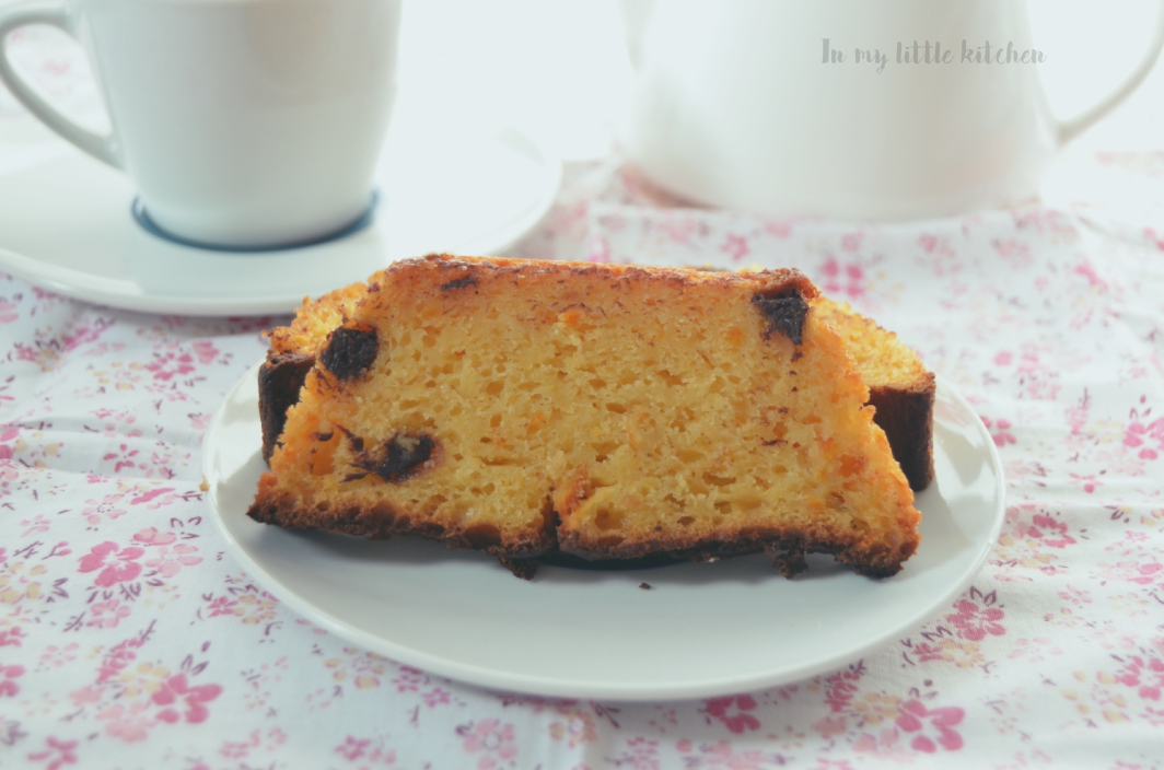 Bizcocho de naranja con chocolate sin gluten y sin lactosa