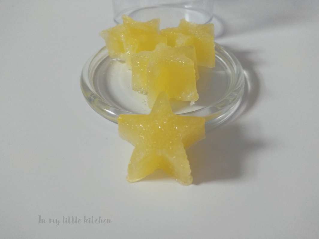 Verter la gelatina en los moldes, yo utilicé unas hieleras de Ikea. Dejar enfriar a temperatura ambiente y llevar al congelador y tenerlas allí durante dos horas para que se desmolden con facilidad.