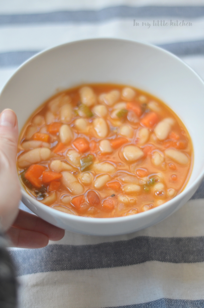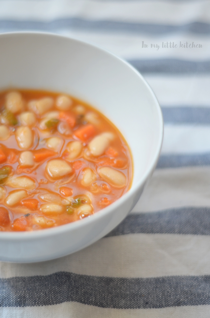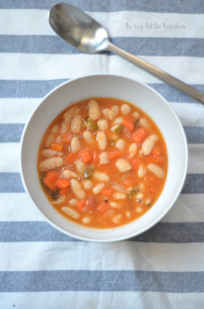 Para inspirarme, traté de imaginarme qué comerían en la época, vi varias páginas con recetas griegas antiguas, y vi que predominaban las legumbres, cocinadas de una manera muy sencilla, con verduras o a veces sin nada, solo la legumbre, así que cuando vi esta sopa de tomate y judías, me decanté por ella. Es muy sencilla de hacer, yo utilicé judías de bote, tardé menos de media hora en hacerla y resulta maravillosa para entonar el cuerpo en estos días de frío. Espero que os guste tanto como a nosotros.