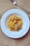 Añadir las judías blancas con el jugo del bote, esto hará que el guiso quede más meloso y además tenga todo el sabor de las judías. Añadir una cucharada de tomate frito casero y mover la cacerola para que se mezcle todo bien. Si os gustan más líquidas podéis ponerle al guiso un poco de agua. Probar con cuidado y rectificar de sal en caso que sea necesario.