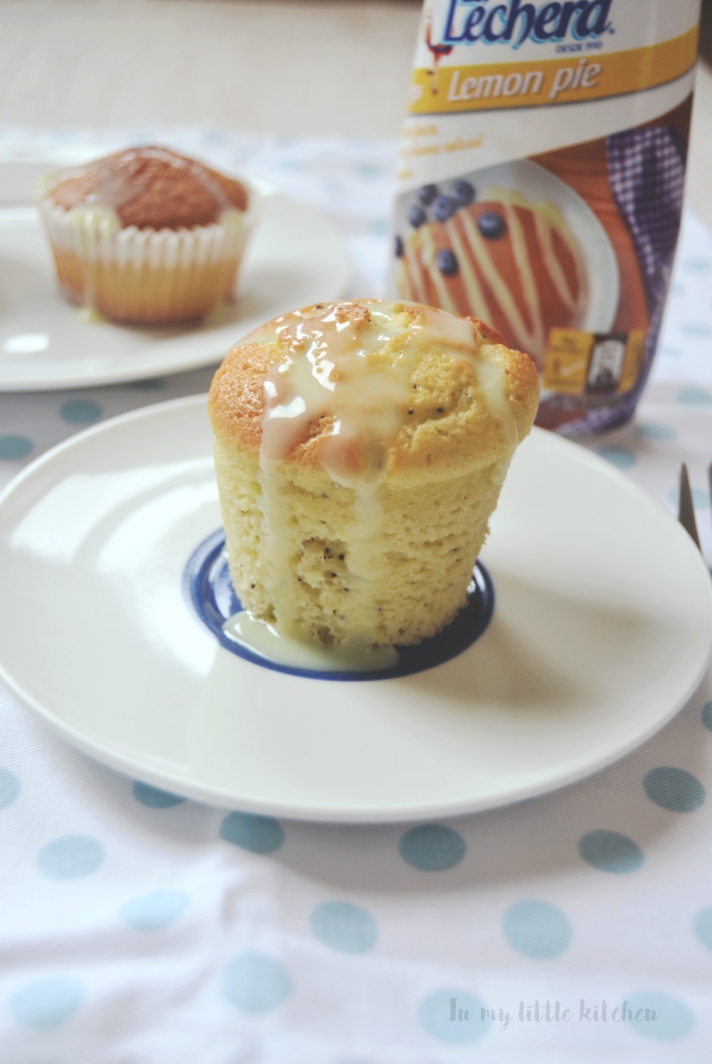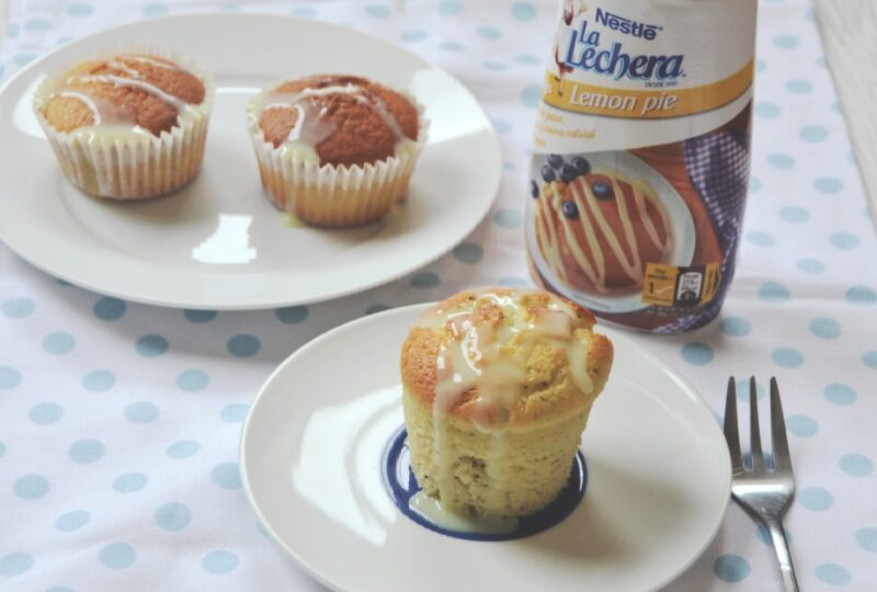 Una de las cosas que venían dentro de la caja eran topings de La lechera con sabor a tarta de limón que me dieron la idea de hacer estas muffins de limón con semillas de amapola que, aunque no lo parecen, son sin gluten, coronadas con esta maravilla de tarta de limón… la combinación no puede ser más deliciosa, en casa han volado.