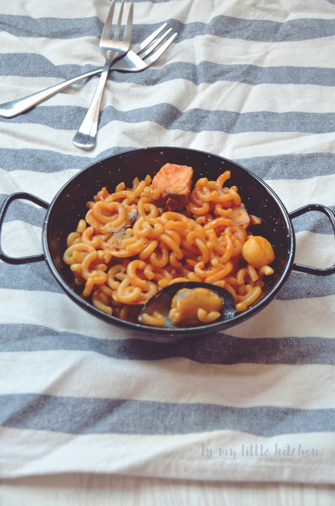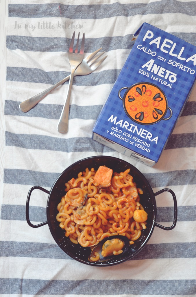 Hace un par de semanas recibíamos en casa la Degustabox de este mes, como ya sabéis siempre viene cargada de cosas deliciosas, pero tengo que reconocer que el caldo para paella de Aneto me puso ojitos desde el primer momento que lo vi y al ser específico para hacer paella o guisos de pescado por ser especialmente marinera y con sofrito, me decidí a hacer una fideua a mi manera.