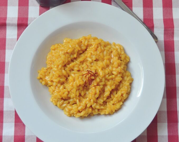 A mi se me ocurrió hacer un risotto, pero un risotto un poco más especial, tan especial como la catedral y su cúpula. El color de la teja de la cúpula me inspiró para hacer un risotto al azafrán. Este tipo de risotto, es muy sencillo y es que está pensando para comerlo para acompañar al plato principal, por ejemplo el osobuco (algo delicioso).