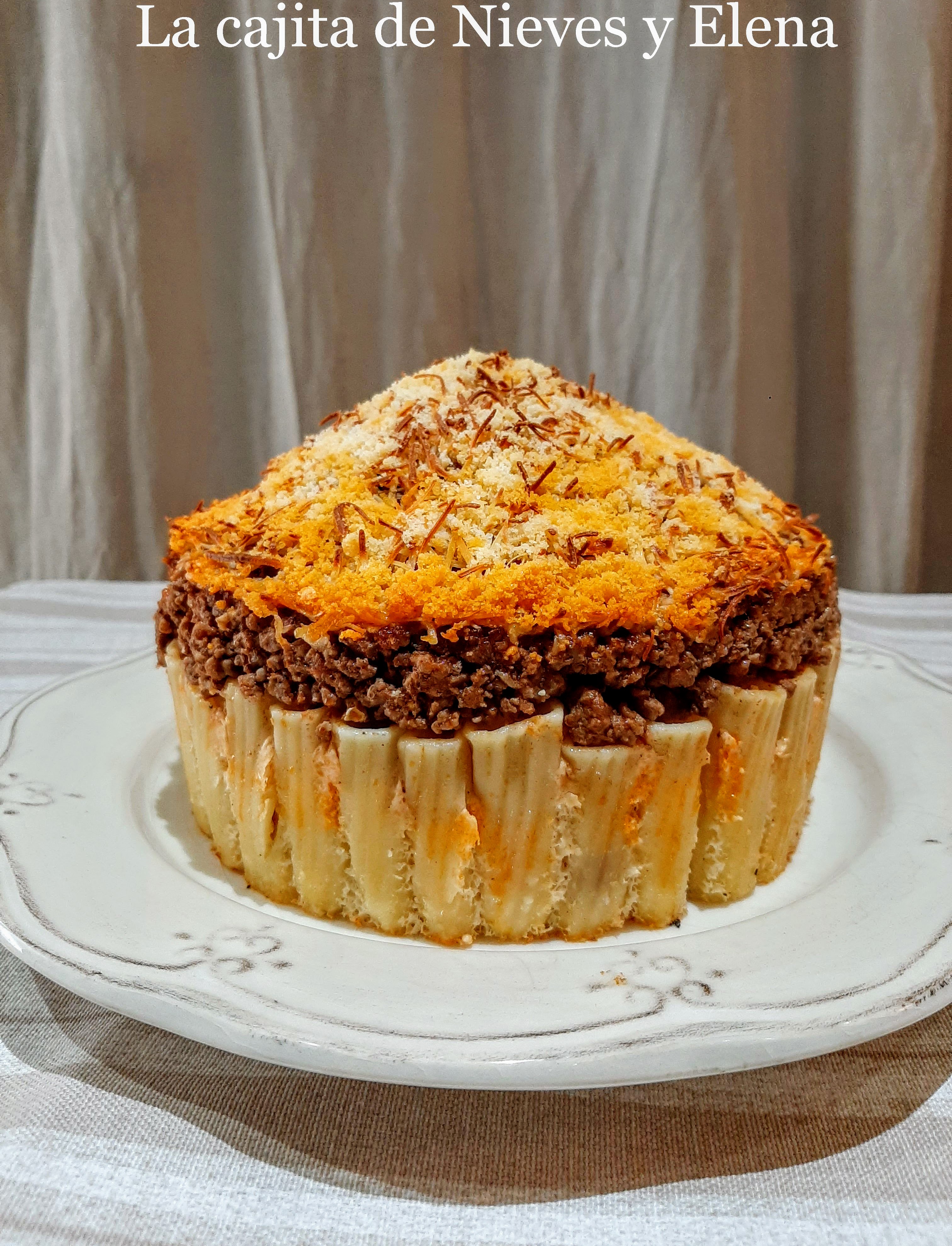 Pastel de macarrones de La cajita de Nieves y Elena: Las chicas de la cajita se han inspirado en la fachada con sus colores verdes, rojizos y blancos y en la cúpula. Los macarrones emulan los mármoles y la boloñesa la cúpula. Además lleva por dentro un relleno de salsa carbonara como blanco es el color predominante de las paredes de su interior.
