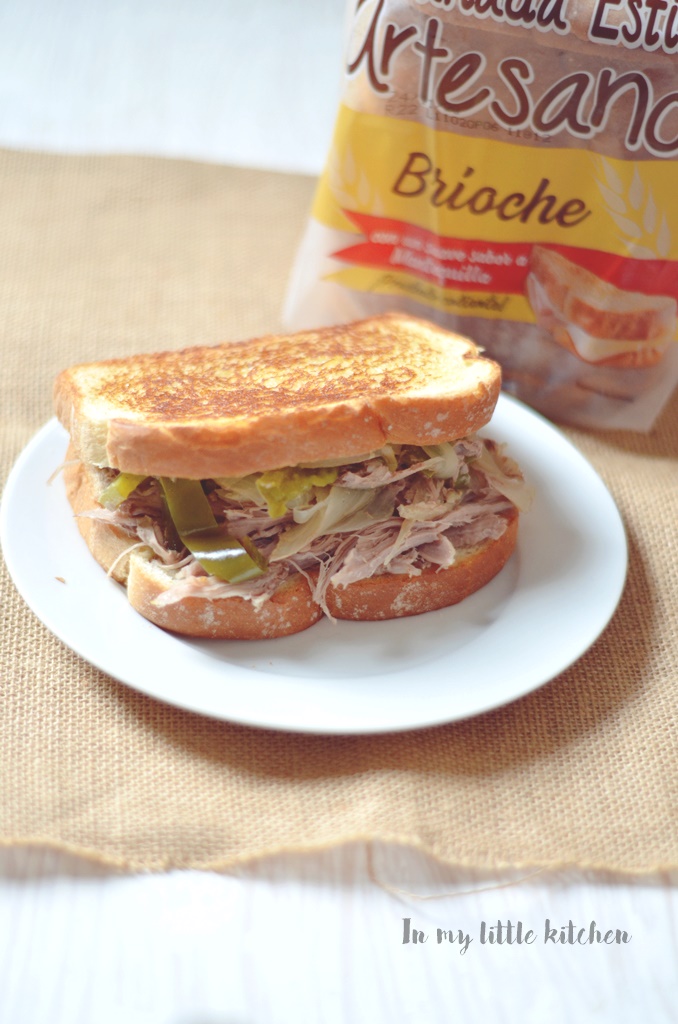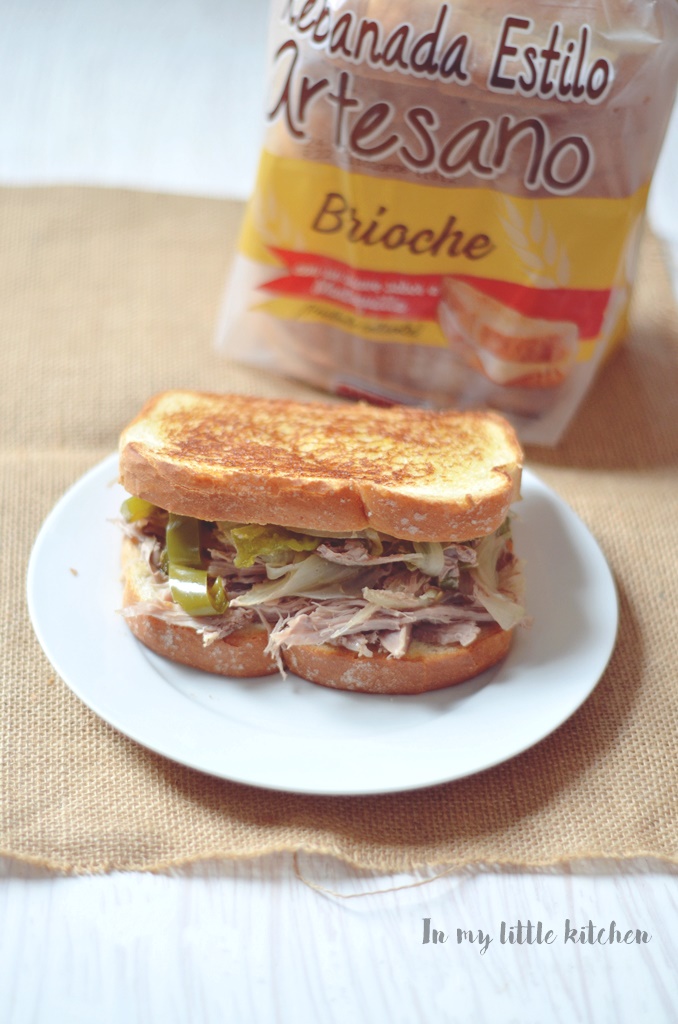 Llevaba tiempo queriendo probar el Philly sandwich, y creo que con este tipo de pan queda perfecto. Este tipo de sandwich es de carne, en mi caso solomillo de cerdo cocinada en olla de cocción lenta, acompañado de pimiento y cebolleta. Podéis ponerle también, una vez hecho una loncha de queso, queda espectacular. Nosotros lo comimos también con un pelín de mostaza y ya es delicioso.