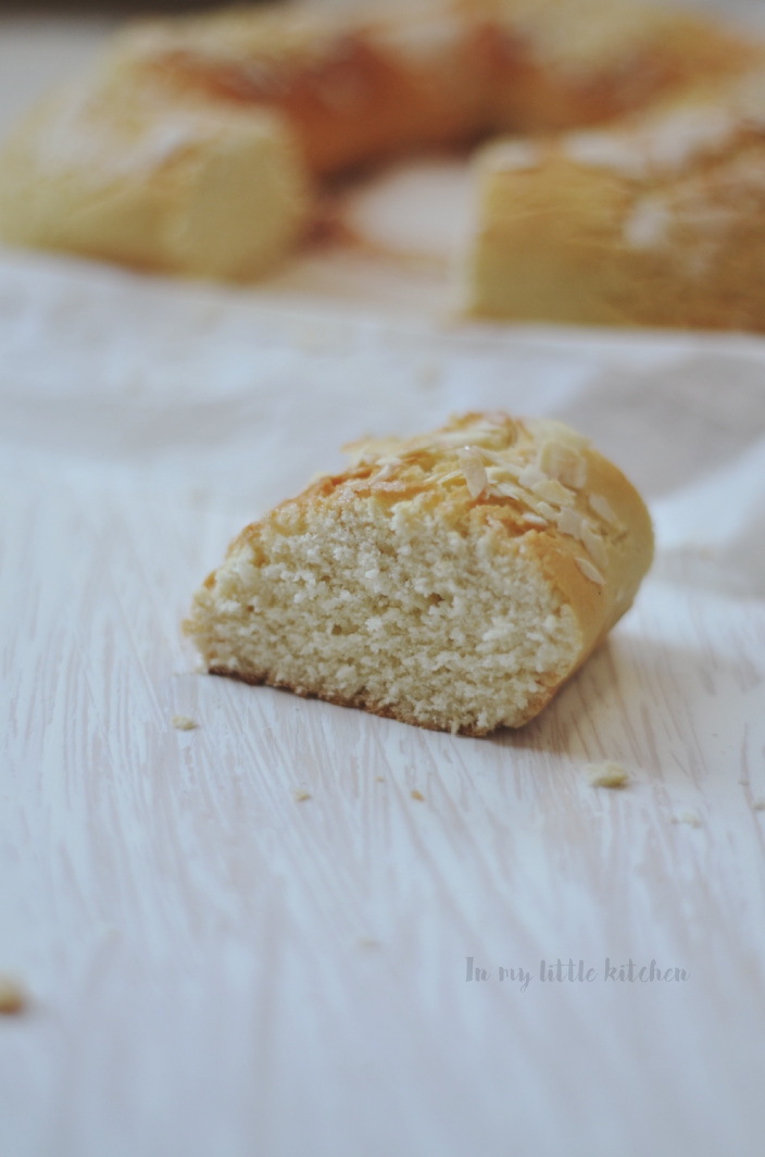 Como podéis ver el roscón yo lo hago sin fruta escarchada ni guindas, simplemente almendra laminada y azúcar. Si a vosotros os gusta adornarlo de otra manera, podéis poner lo que queráis, la fruta, naranja confitada o lo que más os guste.