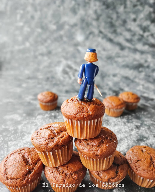 Magdalenas de avena y chocolate sin lactosa de El paraíso de los golosos: Encarnita hizo su particular montaña de magdalenas e incluso incluyó al paseante.