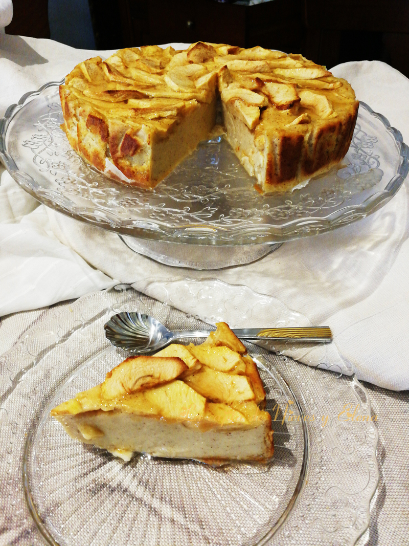 Tarta flan de manzana de La cajita de Nieves y Elena: A las chicas de la cajita, les vino la inspiración en forma de flan, en concreto esta tarta flan de manzana, su suavidad y su textura fueron algunas de las razones para decantarse por este plato.