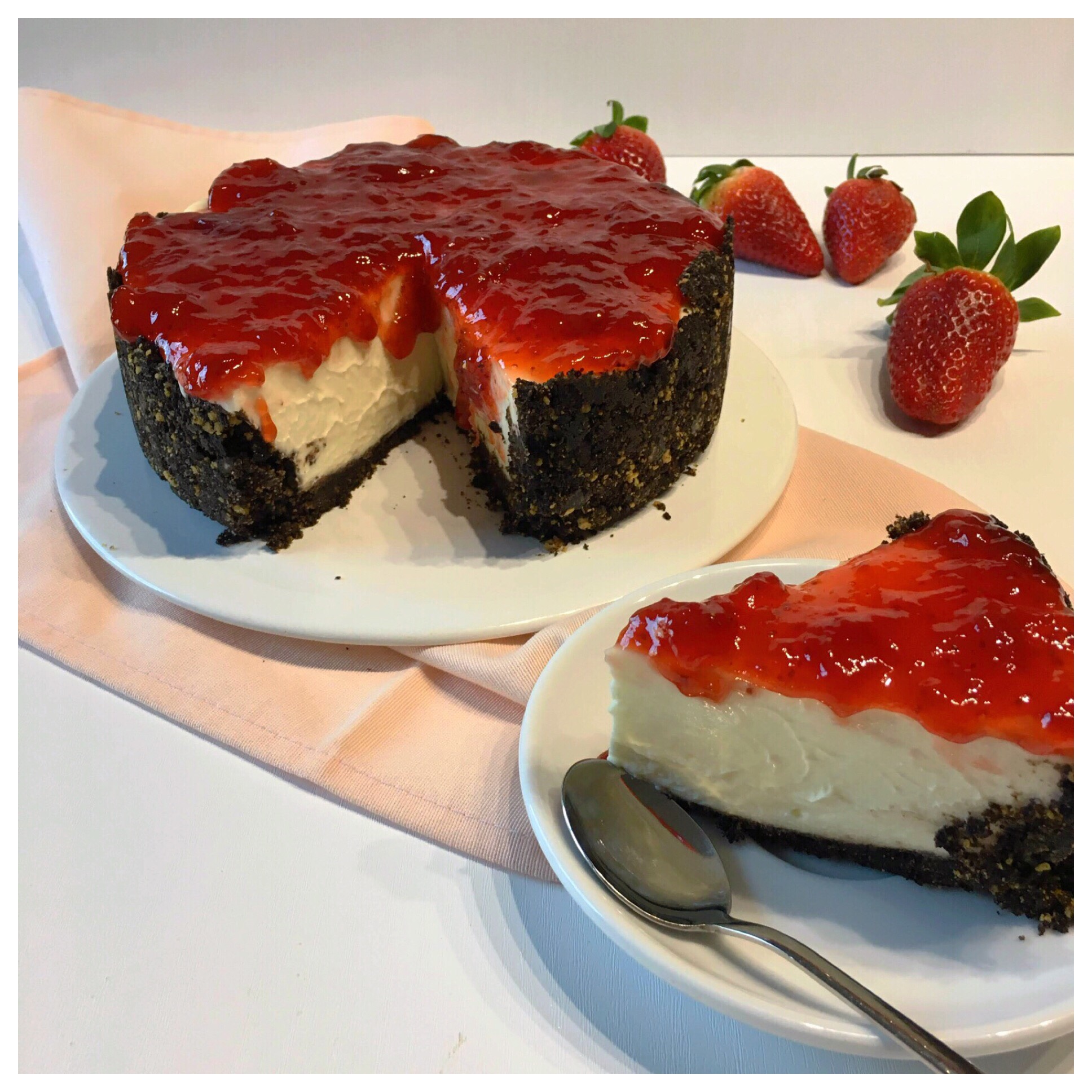 Tarta fría de queso de Las receticas de Ana: Ana se ha inspirado en los colores rojos para hacer esta tarta de queso.