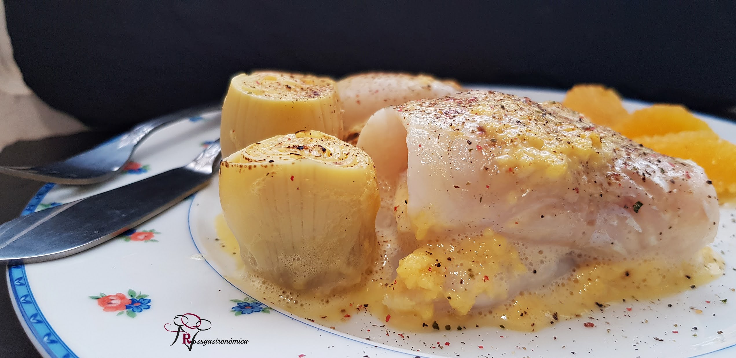 Popietas de merluza con muselina de naranja de RossGastronómica: Rosalía se ha inspirado en el peinado de la mujer para hacer estas popietas.