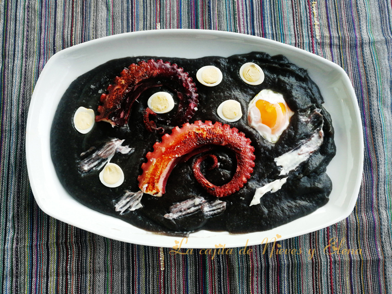 Calamares en su tinta de Ross Gastronómica: Rosalía ha hecho estos calamares en su tinta, tan negros como la noche que representa el cuadro.