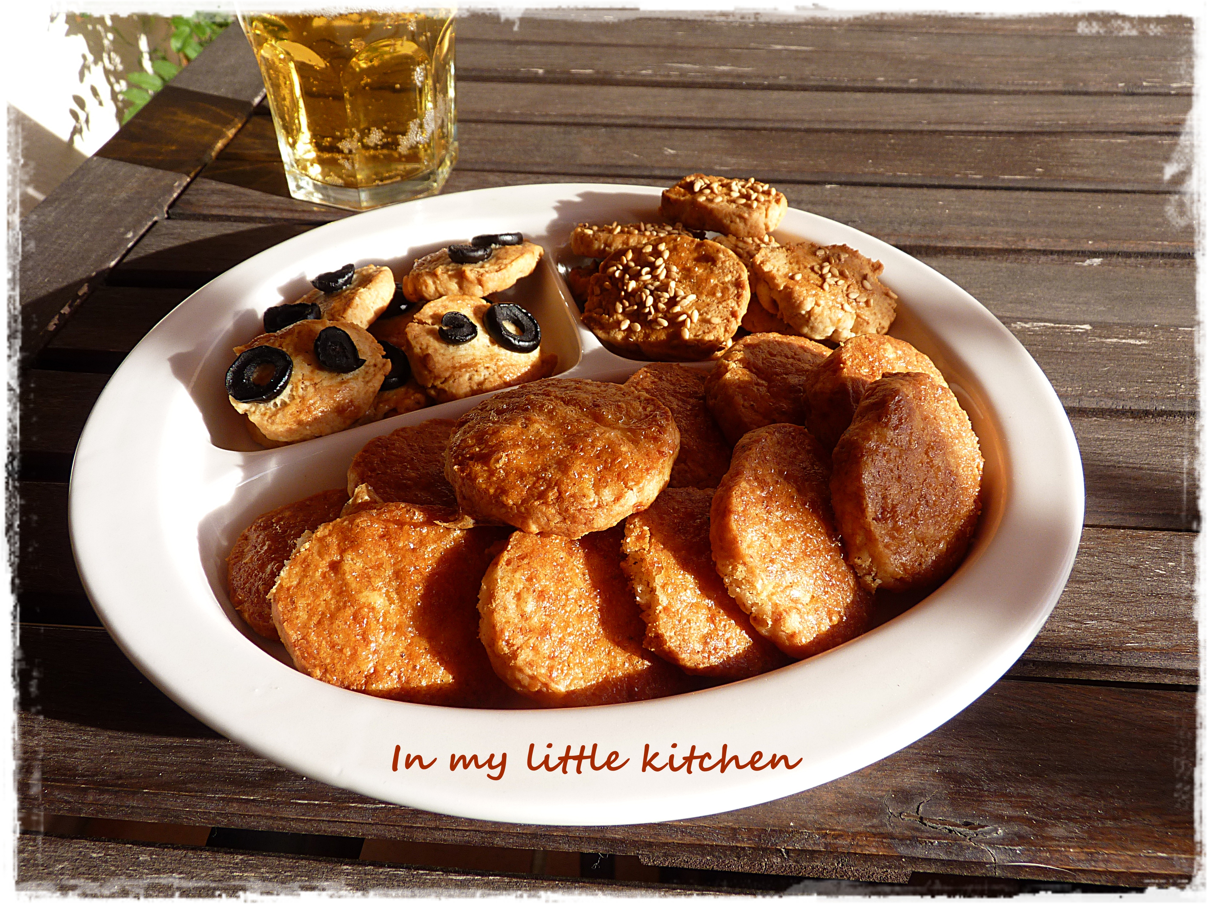 Galletas de queso emmental, galletas de sésamo y galletas con aceitunas: Ideales para un aperitivo con una cervecita bien fresquita, os animo a que hagáis vuestras propias galletas saladas, son deliciosas, aguantan tiempo y además podéis hacerlas del sabor que queráis. Estas sorprenden a todo el mundo.