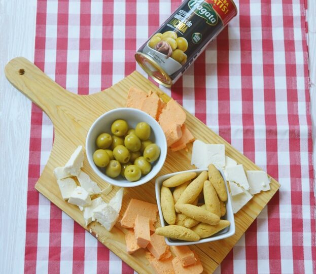 Hace unos días os enseñaba el contenido de la caja Degustabox de este mes, y al ver las aceitunas Fragata edición especial se me ocurrió hacer una tabla de aperitivos con unos ricos colines sin gluten.