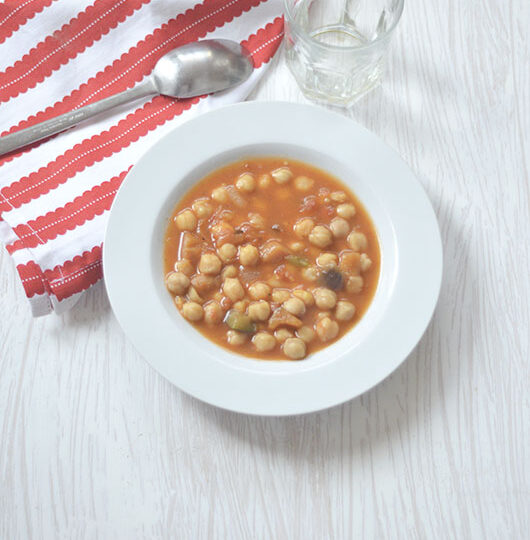 Este guiso de garbanzos con verduras asadas es la mar de resultón. Además es ideal para dar salida a esas verduras que tenemos en la nevera y que pueden estar un poco chuchurrías. Como veis el resultado es un guisazo de lujo, fácil y que se hace en un momento.